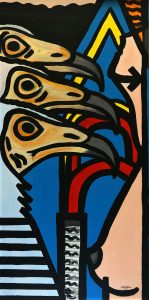Vincenzo Giubba’s work has always proposed an art that is difficult to classify, “…whose forms hint at a breaking of geometric rules that creates a strong tension toward boundaries, toward the frontier, highlighting the limits of traditional codes.” (E. Mucci, from “Paths between form and chaos”). An art aimed at reinterpreting signals from contemporaneity: “…The artist’s palette, although infused with the same anxiety as the sculpture of seizing hidden figures, epochal signals, and linguistic and technological metaphors of our time, is animated by an insurmountable chromatic force (…). The symbols of forgotten realities, the underground graffiti of refuge places, the metallic and jarring notes of the wild metamorphosis of our era impose themselves on the canvas precisely because they are real. The artist has once again appropriated the existing, the phenomenon, (…).” (M. Paraventi, from: Paths between form and chaos”).